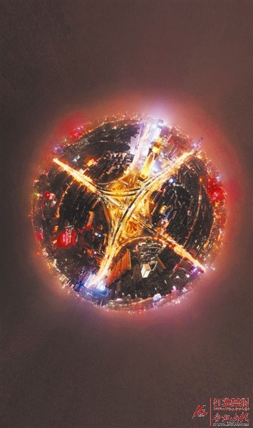 航拍五里墩夜景。