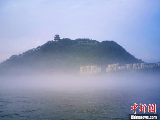 【美!雨后新安江薄雾轻罩 楼阁若隐若现如仙境】 蔡季安 摄