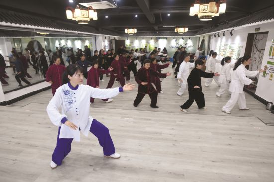 11月22日,琅琊区龙池社区,太极拳爱好者们跟着老师练习基本动作。当日,该社区新时代文明实践站微公益创投——太极拳公益推广班开班,提供全民健身平台的同时,进一步推广和传播太极拳文化。据了解,该培训班每周三节课,均设在晚上及休息日以便群众参与。