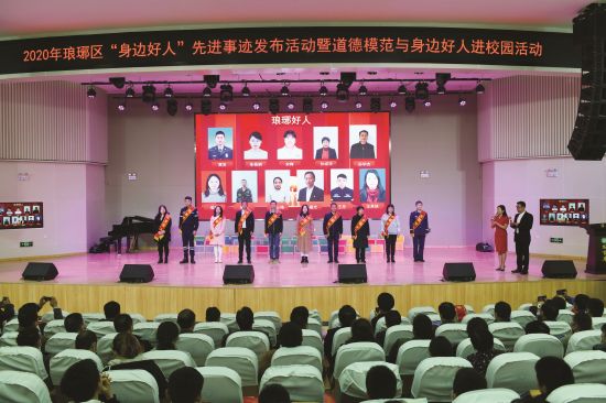 11月20日,由中国人民银行滁州市中心支行,市发改委,琅琊区文明办、教体局、发改委共同主办的2020年琅琊区“身边好人”先进事迹发布活动暨道德模范与身边好人进校园在滁州市宝山学校举行。活动现场聆听好人先进事迹和抗疫感人故事,对2020年“琅琊好人”代表进行表彰,为“爱满琅琊”志愿服务队授旗,向10位“身边好人”集中授信200万元道德信贷,树立好人有好报的鲜明导向,向全社会传递了正能量。杨毅 魏巍摄