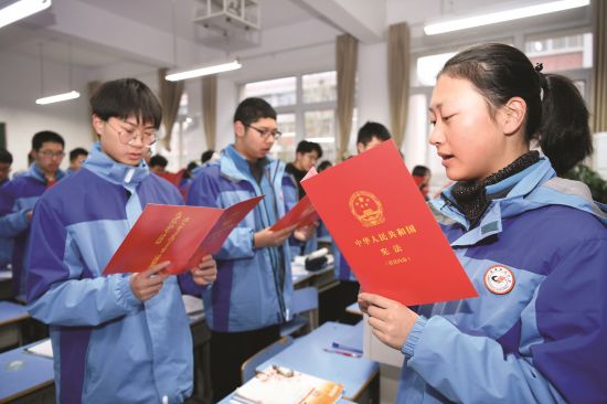 宪法学习进校园 2020-12-07 09:09 滁州网 扫描到手持设备 字号: 12月4日,滁州中学学生在晨读课上学习宪法。 今年11月30日——12月6日是全国“宪法宣传周”,12月4日是第七个国家宪法日。滁州中学利用当日晨读时间在全校各班同步开展宪法晨读活动,培育学生们的宪法意识、国家意识、规则意识。 全媒体记者计成军摄 相关阅读 关键词: 晨读 国家 意识 宪法 学生 工信部修订印发《国家工业遗产管理办法》2023-03-16 南谯“三举措”扎实推进学生资助精准化2023-03-16 明光交通安全宣传进农村学校2023-03-13 习近平出席解放军和武警部队代表团全体会议并发表重要讲话2023-03-09 文化和旅游部部署做好2023年文明旅游工作2023-03-03 教育部办公厅关于做好当前疫情形势下学校体育工作的通知2023-02-28 南谯精耕细作做好普法工作2023-02-09 我市中小学迎来开学第一天2023-02-07 明光市发改委认真贯彻落实全省“新春第一会”精神2023-02-02 滁州卷烟厂开展宪法宣传系列活动2022-12-30 责任编辑:陈姝妤 复制网址 打印 收藏 关于我们 | 联系我们 | 加入我们 | 版权声明 | 手机访问 | 网站地图 | 留言反馈 | 我要投稿 中共滁州市委宣传部主办 滁州日报社承办 Copyright?2009-2010 Chuzhou.cn. All Rights Reserved 滁州日报社 版权所有 皖网宣备3412015001号 皖ICP备11004325号-1 热线电话:0550-3022685
