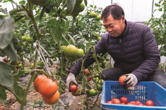 12月2日,琅琊区合赢蔬菜家庭农场工人们正在采摘成熟的西红柿。今年上半年,位于琅琊区三官街道邓坝村的合赢蔬菜家庭农场正式与该村村委会签订村企联建协议,流转土地千亩以上,种植有机无公害蔬菜,既壮大了村集体经济,又带动困难群众增收致富。