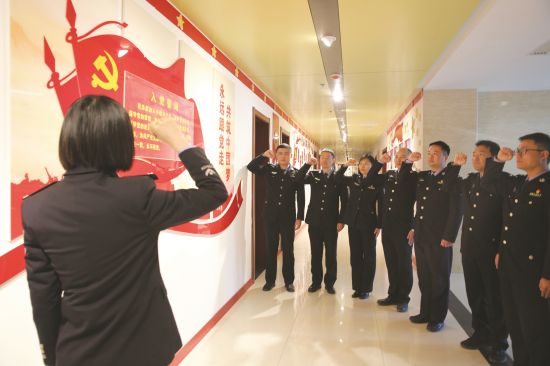为激励预备党员坚定理想信念,牢固树立全心全意为人民服务的宗旨,来安县公安局近日组织2020年度发展的7名预备党员开展入党宣誓活动。宣誓活动结束后,预备党员还参观了局党建文化长廊,集中观看了《警旗授旗仪式专题教育片》,认真聆听了习近平总书记在警旗授旗仪式上的重要讲话。 贺美超摄