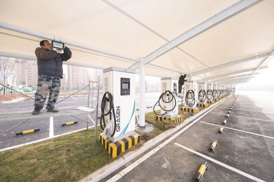 1月27日,在滁城卫校巷停车场,工人正在安装照明设施,该停车场充电桩已安装完毕,等待移交投入使用。为已建成停车场安装充电桩是我市2020年“为民办实事”项目之一,目前,70个充电桩已全部安装完毕。该项目的实施,有效助力新能源发展,加强了我市新型基础设施建设,为广大市民的新能源汽车充电提供了更多方便。