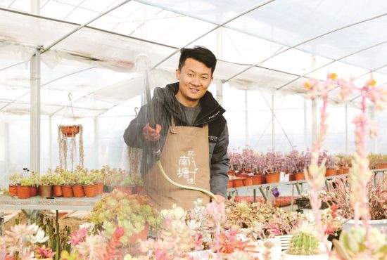 南塘花坊家庭农场通过线上、线下销售平台,逐渐建立起稳定的销售渠道,初步实现盈利。2016年底,齐勇不仅成功脱贫,还成为当地致富带头人,带动村里的贫困户就业增收。去年在当地政府的支持下,齐勇的花卉大棚增加了4000平方米,又流转十余亩土地进行草莓和猕猴桃特色种植。如今,新鲜上市的草莓供不应求。沈 果摄