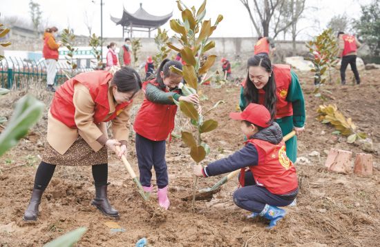 今年是全民义务植树开展40周年。3月12日,在琅琊区龙池社区,志愿者在整治后的荒坡上进行绿化植树。植树节当日,市委党校和琅琊区龙池、高巷社区等单位的志愿者们与市工农小学的小朋友们一起挖坑、栽树、培土、浇水,为家园绿起来、环境美起来尽一份力量。