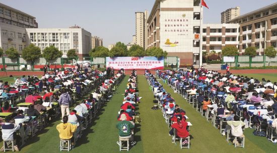 该市中小学近400名学生参赛,比赛分书法和绘画两大类九个组别,采取现场命题书写的方式进行。
