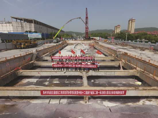 5月8日上午,滁宁城际铁路首个地下车站封顶仪式在龙蟠大道站施工现场举行。