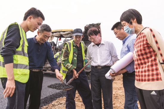 5月21日,全椒县一在建省道施工工地上,市公路学会的工程师在现场接受施工企业技术咨询。