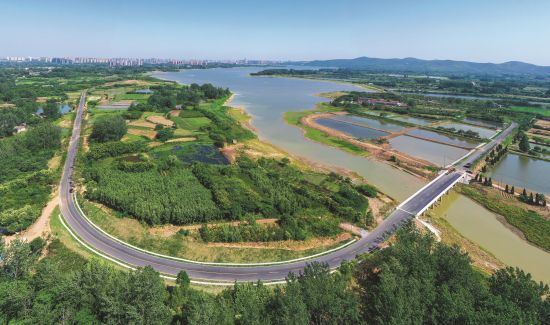 西涧湖环湖道路整治工程是我市重点工程,旨在加强对西涧湖的保护,确保滁城居民饮水安全。该项目起终点均设置在世纪大道与滁定路交叉口西,闭合成环线。于2020年2月28日开工,全长约18.937公里,分A、B、C、D四个路段。A段新建段为主体工程,长9.718公里,主体及绿化工程已完工并通车。图为6月5日拍摄的已建成通车的A段环湖路和西涧湖景色。 全媒体记者卢志永 通讯员唐封凯摄