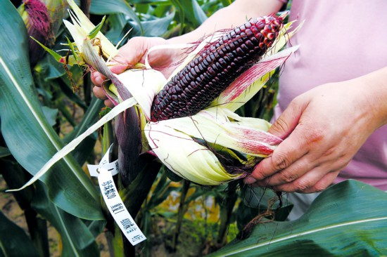 富含叶酸的黑糯玉米品种“珍珠糯20”。