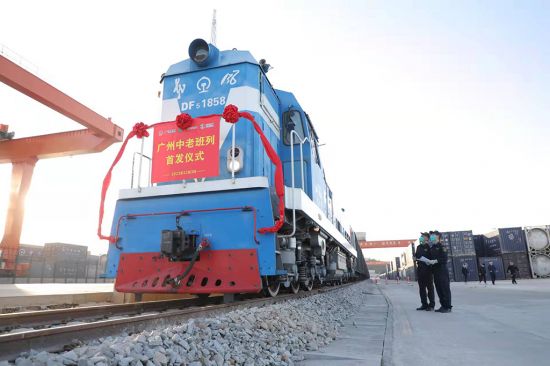 3日下午,两趟满载货物的中老国际班列分别从深圳和广州始发,到达云南昆明后将沿着新开通的中老铁路行驶,抵达老挝万象。这两趟班列共装有107个集装箱,这是粤港澳大湾区首批开往老挝的国际班列。